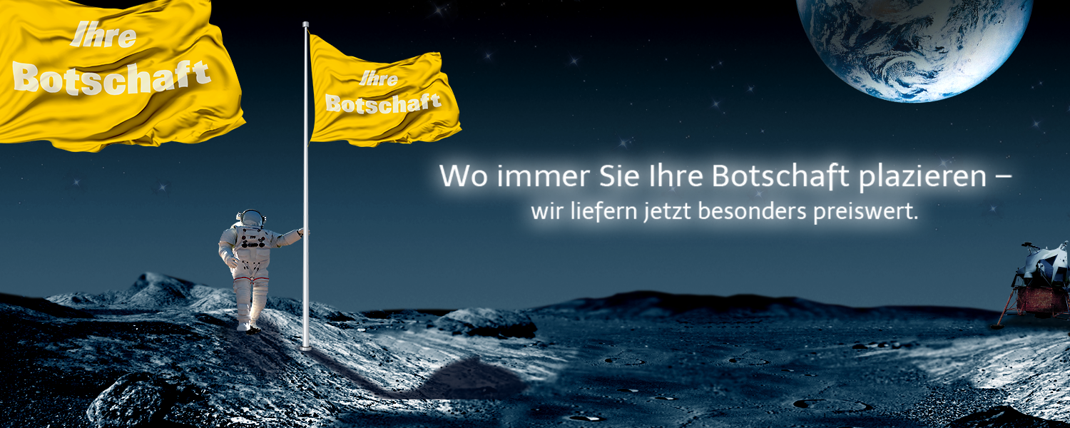 Preisgünstige Werbeflaggen in Standard-Formaten als Hiss- oder Auslegerfahne.