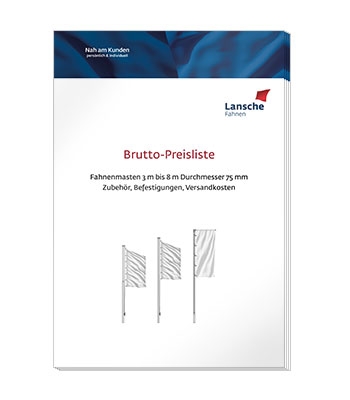 Im PDF zum Download sind für alle Fahnenmasten zwischen 7m bis 12 m aus Aluminium und Stahl die Brutto-Versandkosten aufgelistet.