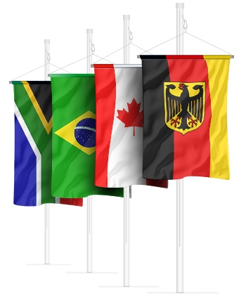 Begrüßen Sie Ihre internationalen Gäste bei Tagungen, Symposien und Kongressen mit den Nationalflaggen ihrer Heimatländer. Oder zeigen Sie Ihre internationale Ausrichtung mit den Flaggen Ihrer ausländischen Standorte.