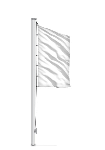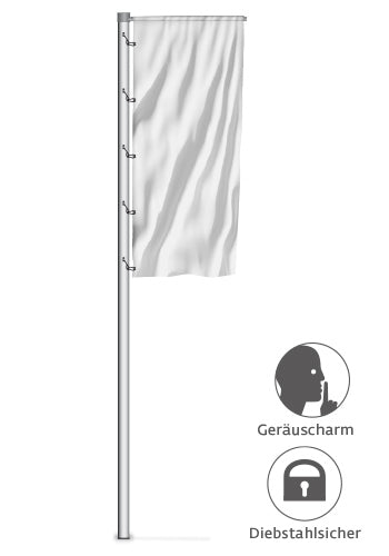Die Fahnenbefestigung am Mastrohr erfolgt mittels 3 Fahnenschlingen aus Perlon mit Kauschenpressung. Ein Gegengewicht aus Edelstahl verhindert das Aufsteigen der Fahne bei Sturm.