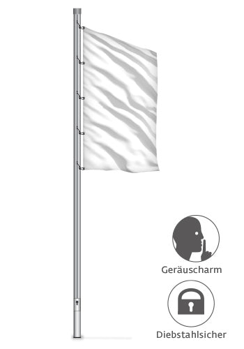 Aluminium Fahnenmast mit Standard-Hissvorrichtung für die Nennhöhen 3 m bis 8 m.