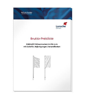 Diese Preisliste beinhaltet alle Edelstahl Fahnenmasten. Hinzu werden die Standard-Masthalterungen, das Zubehör und die Versandkosten aufgelistet.