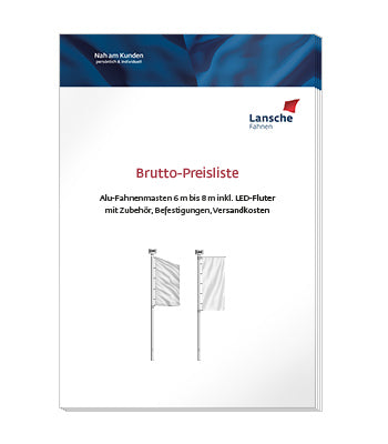 Im PDF zum Download sind die Versandkosten für alle Fahnenmasten zwischen 7m bis 12 m aus Aluminium und Stahl aufgelistet.