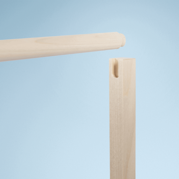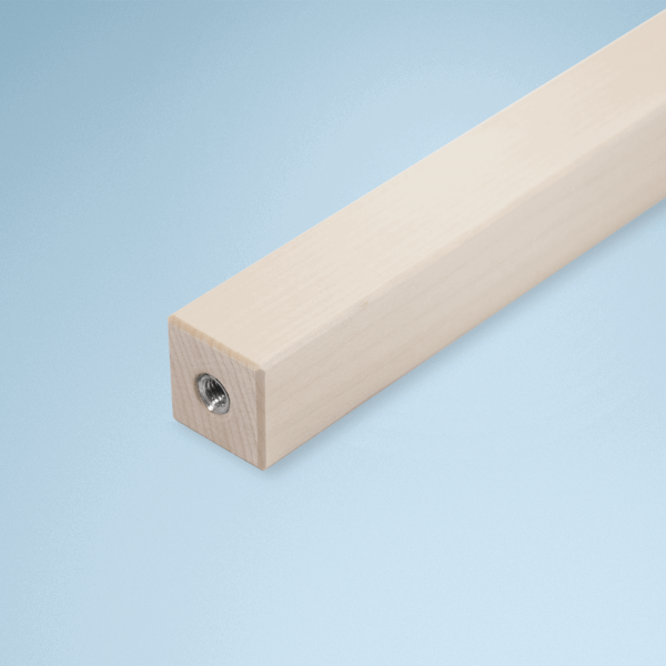 Die Fußleiste des Holz H-Banner besticht durch seine Schlichtheit. Das unbehandelte Material beinhaltet zwei vormontierte Schrauben, die das Rahmenelement führen. Die Stange die in den unteren Hohlsaum des Tuchs eingeschoben wird, wird in der Nut des Gestänges geführt.