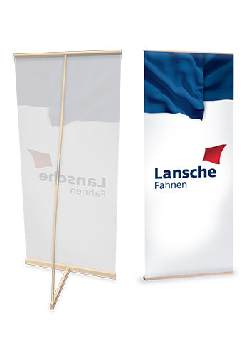 Durch die höhenverstellbare Stange des Holz L-Banner können verschiedene Tuchgrößen zwischen 190 und 200 cm erreicht werden und das Motiv ist immer gespannt.