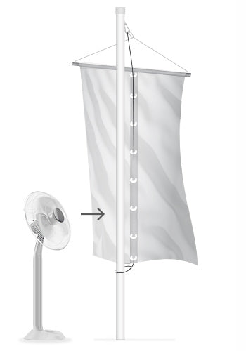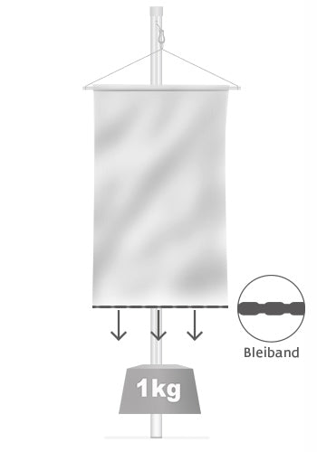 Leichten Schutz gegen das Umschlagen bietet auch ein Bleiband, das an der Unterkante des Banners eingenäht wird und den Fahnenstoff beschwert. In erster Linie sorgt es jedoch für einen schönen Fall des Fahnenstoffes. Sie werden den Unterschied sehen.
