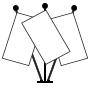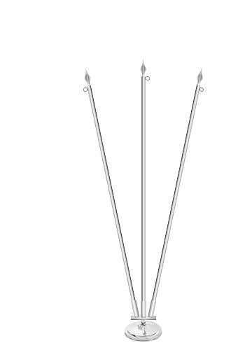 Der dreifache Fahnenhalter aus Metall ist verchromt oder messingfarben erhältlich und hat einen Durchmesser von 32 cm. Auch Marmorfüße (hell oder dunkel) sind auf Anfrage lieferbar.
