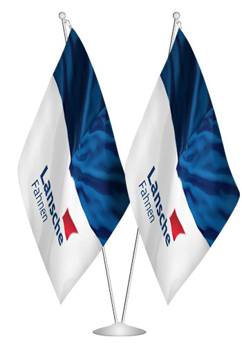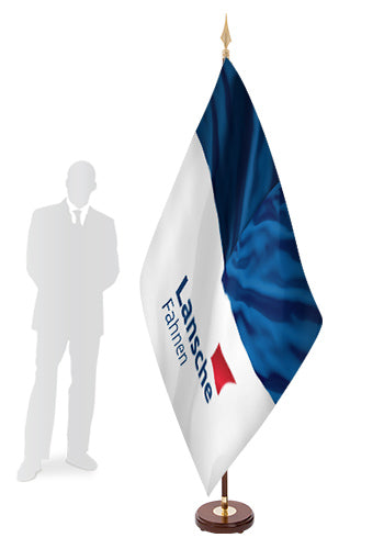 Lansche Fahnen liefert die Raumständer komplett mit Standfuß, Fahnenstange und Spitze und empfiehlt die Fahnengröße 120 x 80 cm (Breite x Höhe).