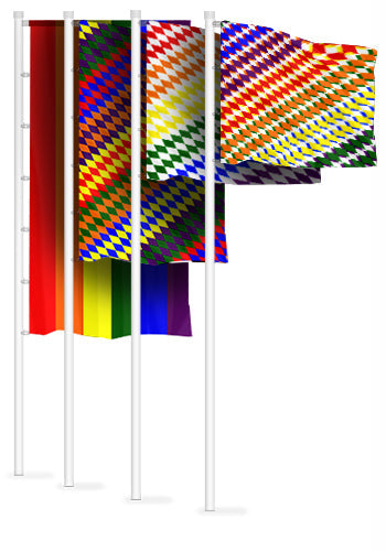 Fahnenmasten mit Ausleger und Untenausleger für volle Sichtbarkeit und lange Haltbarkeit der Fahne.