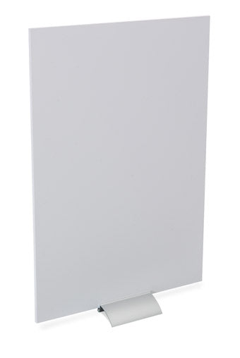 Ein 90 mm breiter Aluminiumsockel in ansprechendem Design hält das Werbeschild zuverlässig durch einen einfachen Klemmmechanismus. So können die Hartschaumplatten ausgetauscht und unterschiedliche Motive beliebig eingesetzt werden.