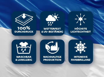 Extrem haltbar bei Wind und Wetter – brillante Farben – 100 % Durchdruck.